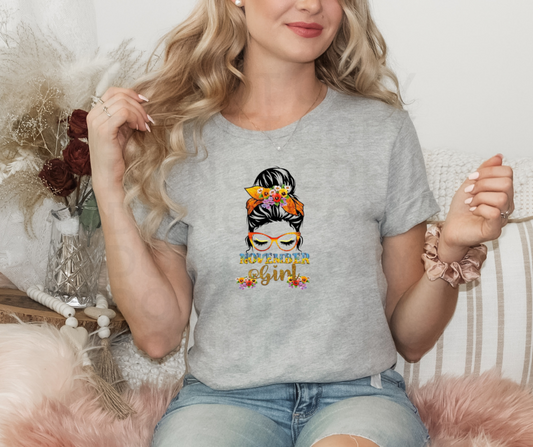 November Girl T-Shirt, Cute Graphic Tee, Fall Birthday Gift, Women's Unisex Shirt, Casual Autumn Wear, Floral Design Shirt