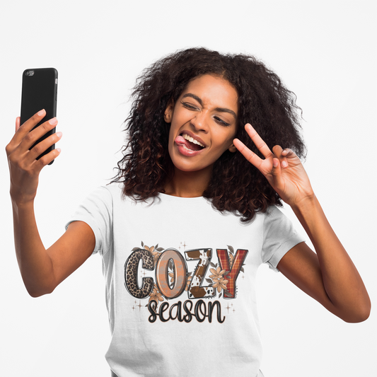 Cozy Season Unisex T-Shirt, Fall Fashion Tee, Animal Print Shirt, Comfortable Casual Wear, Gift for Friends, Autumn Apparel