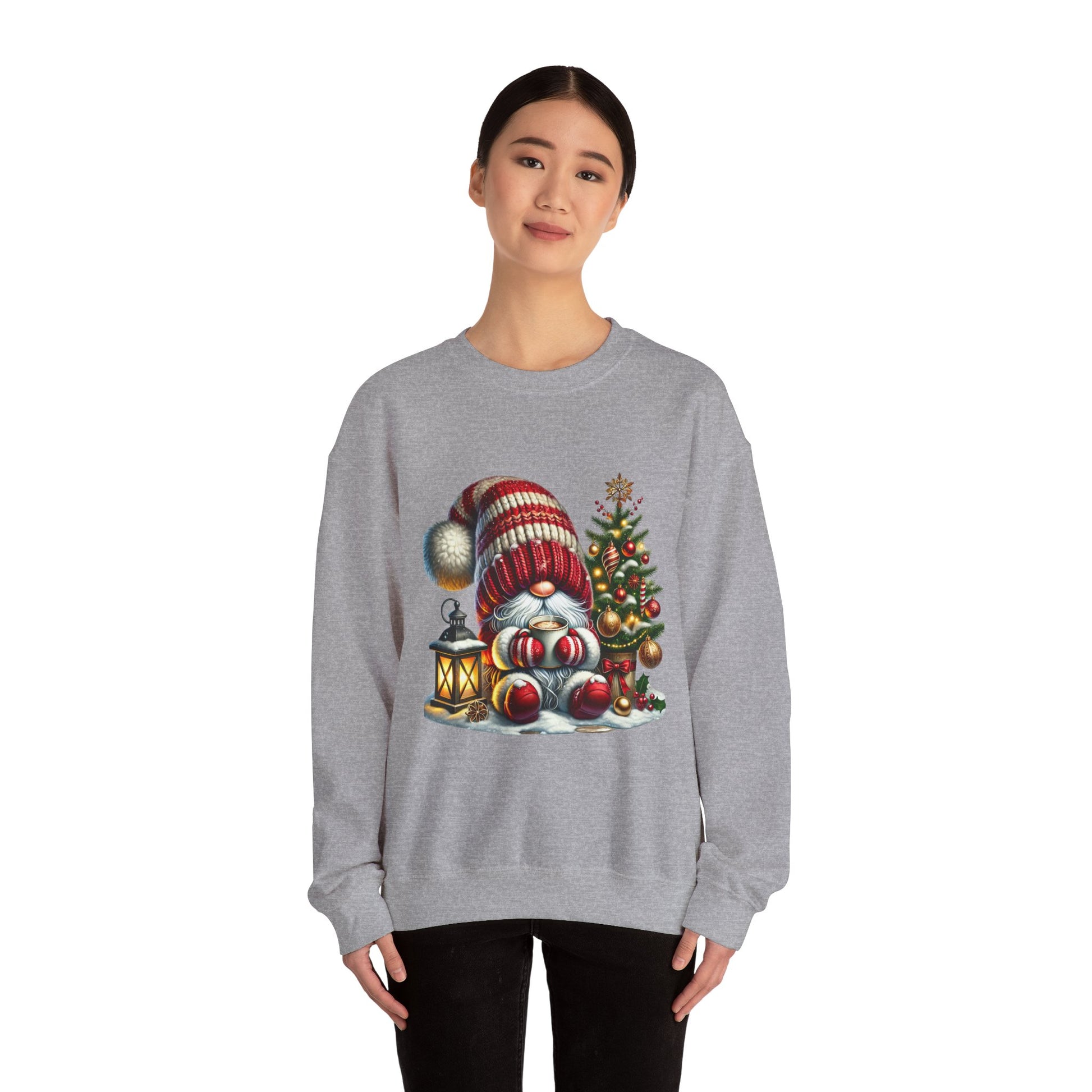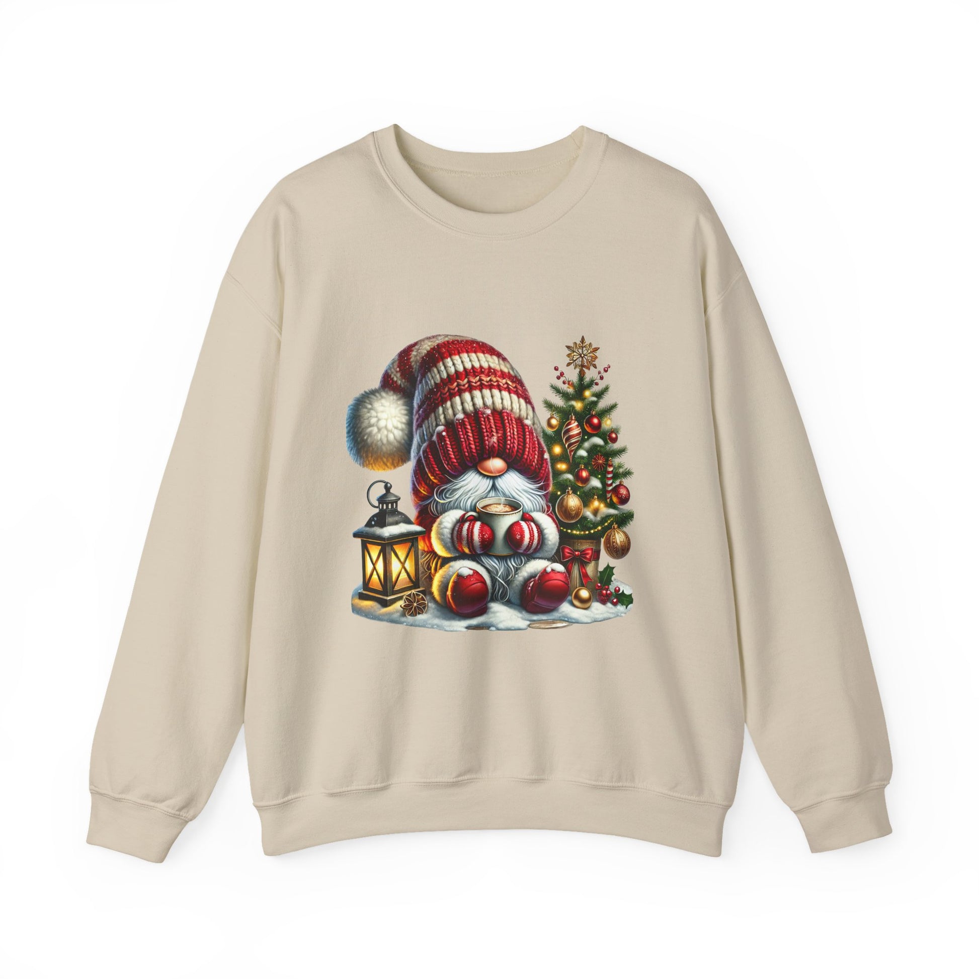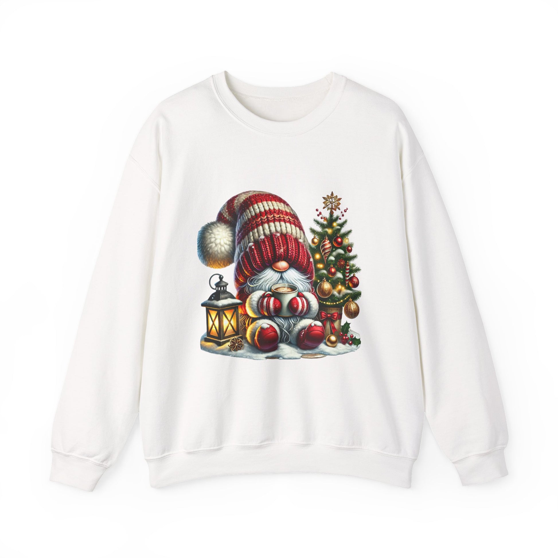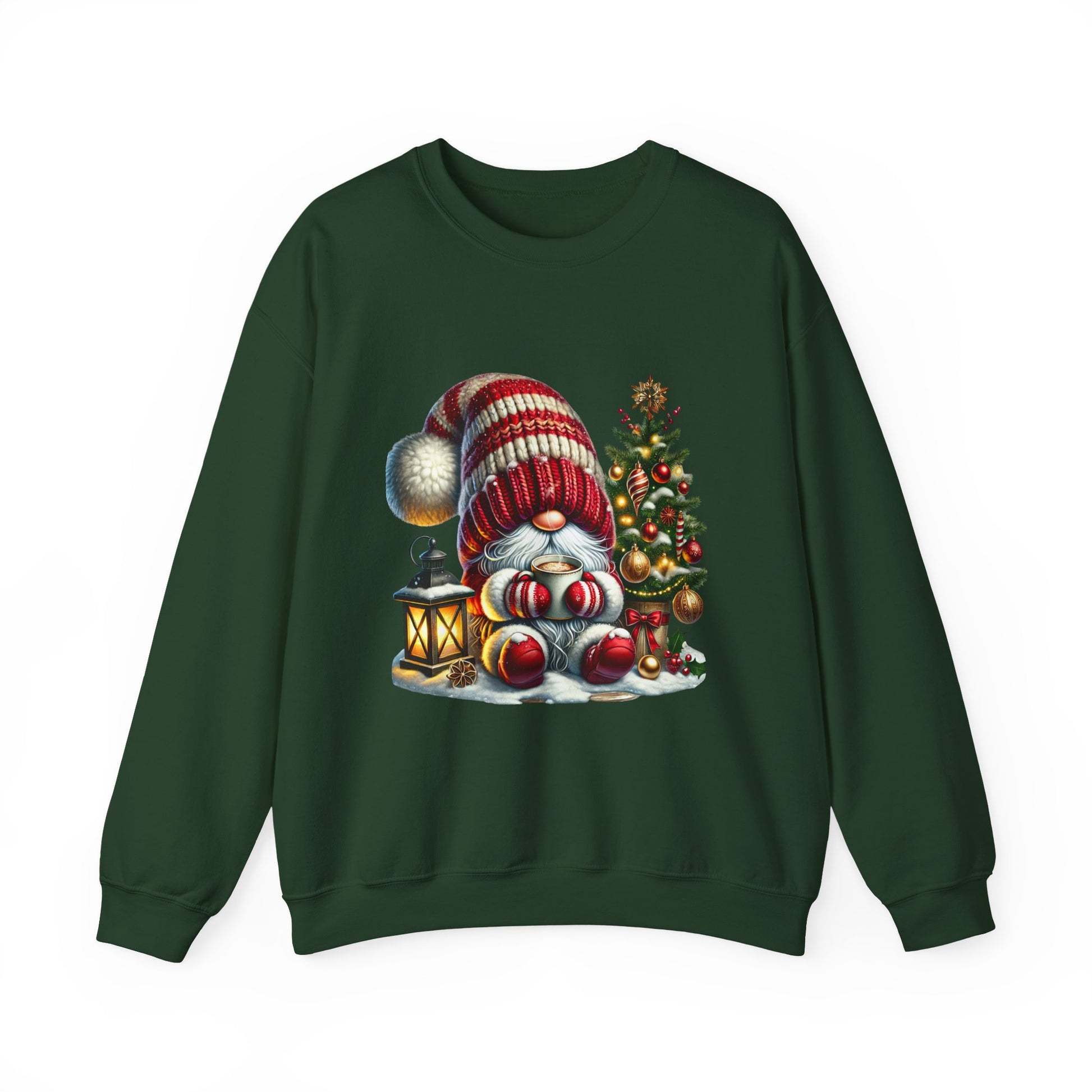 Christmas Gnome Crewneck Sweatshirt — Festive Tree & Lantern Holiday Sweater