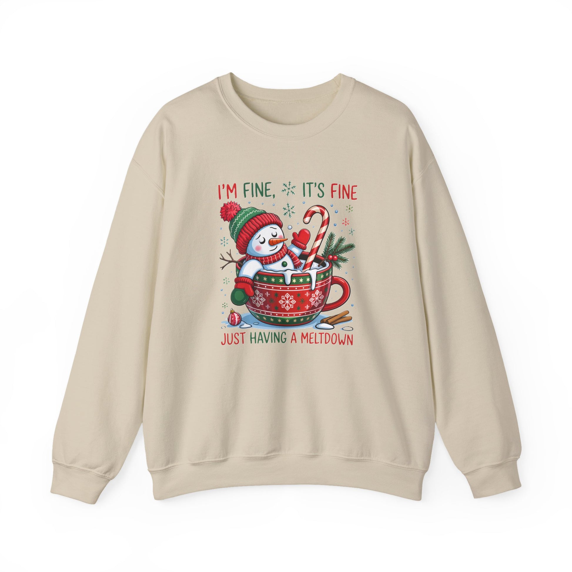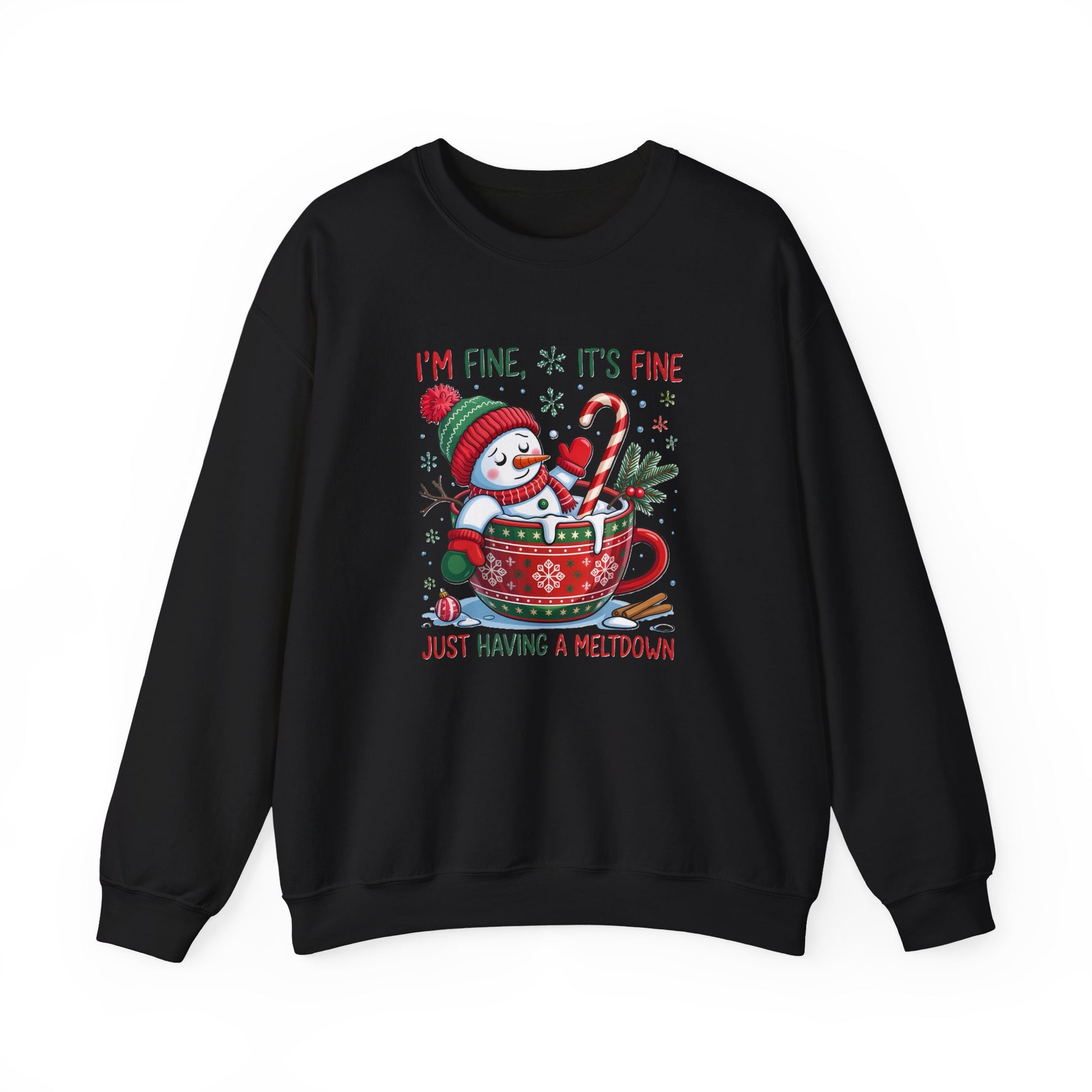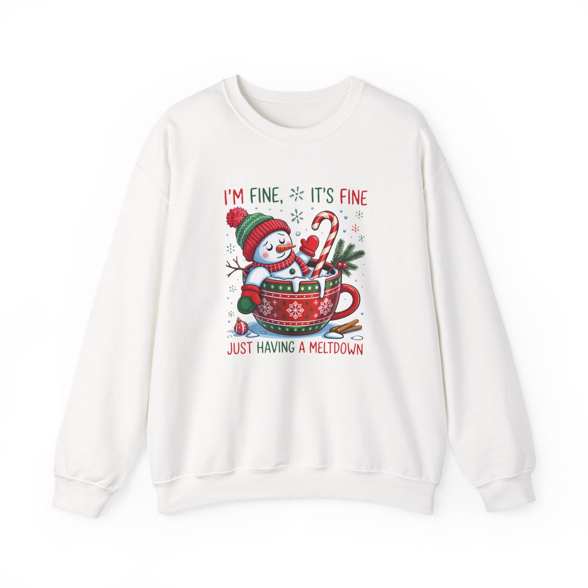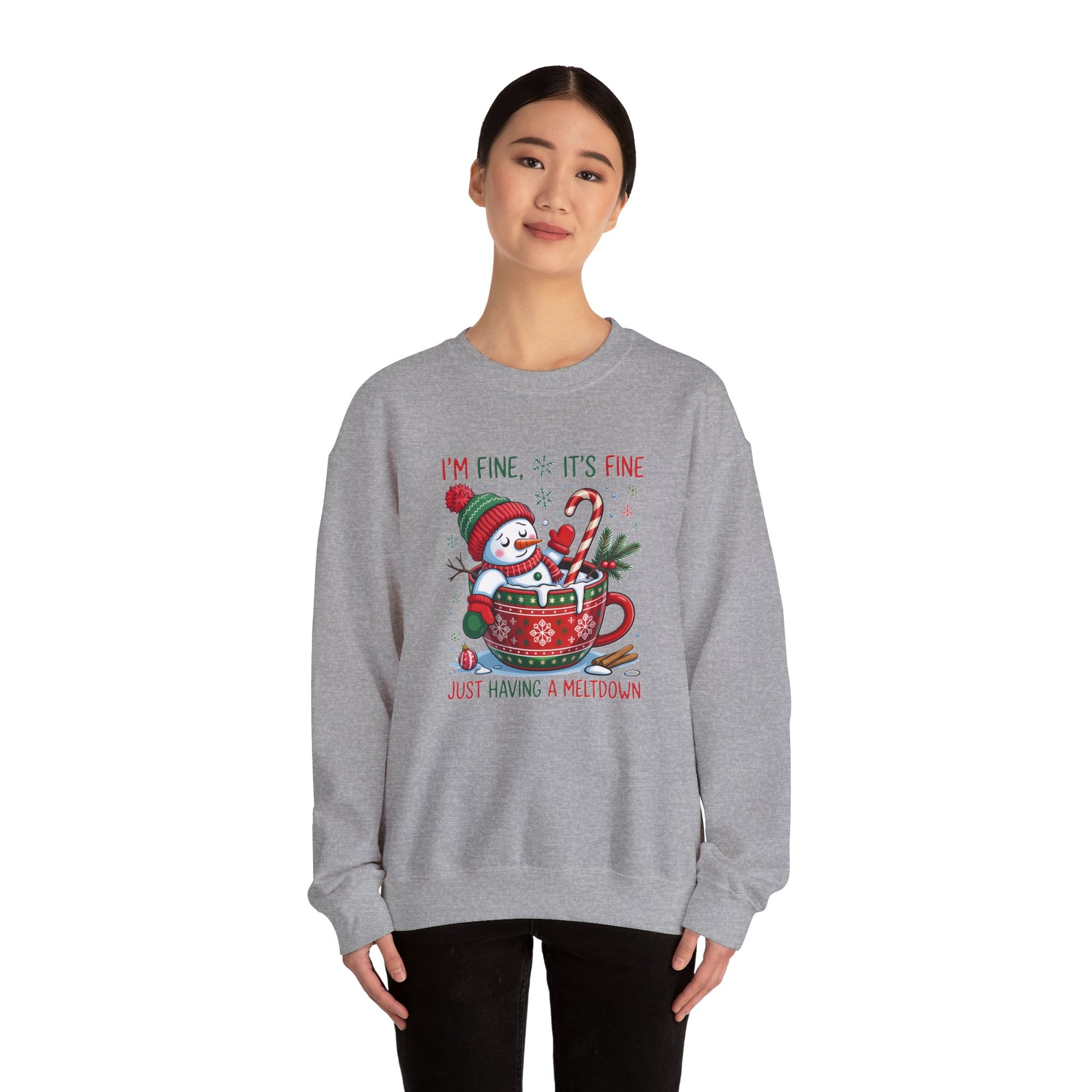 Holiday Snowman Sweatshirt - "I'm Fine, It's Fine, Just Having a Meltdown" Cozy Christmas Crewneck